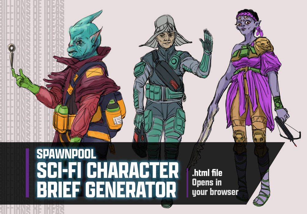 Smash Art Block - The Spawnpool Sci-fi Character Brief Generator will give you billions of ideas for Sci-fi characters.